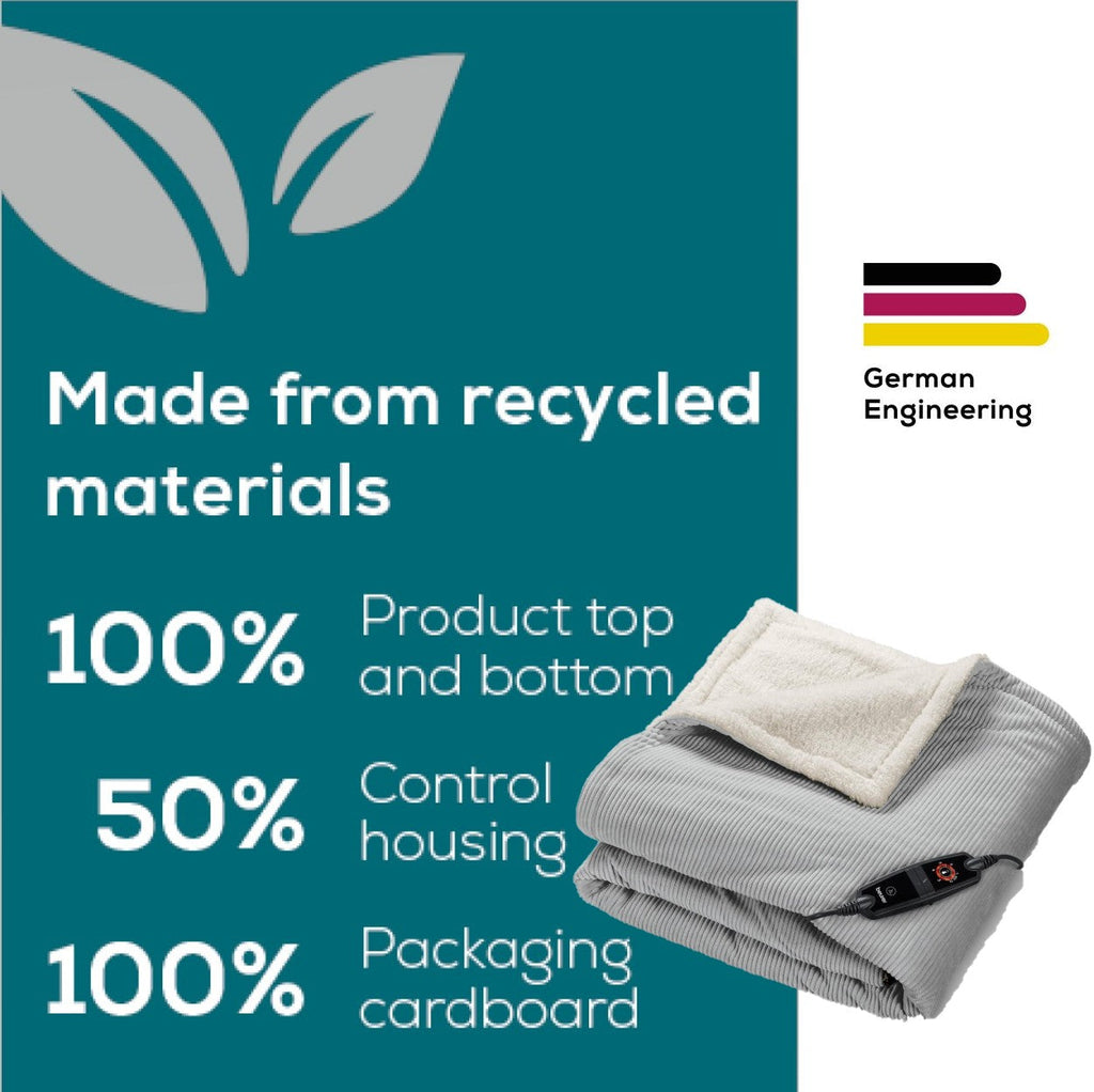 Beurer Germany HD 81 GP Electric Blanket: Eco-Friendly Green Planet Range Heated Throw. Corduroy Fabric. Light Grey 1.8x1.3m