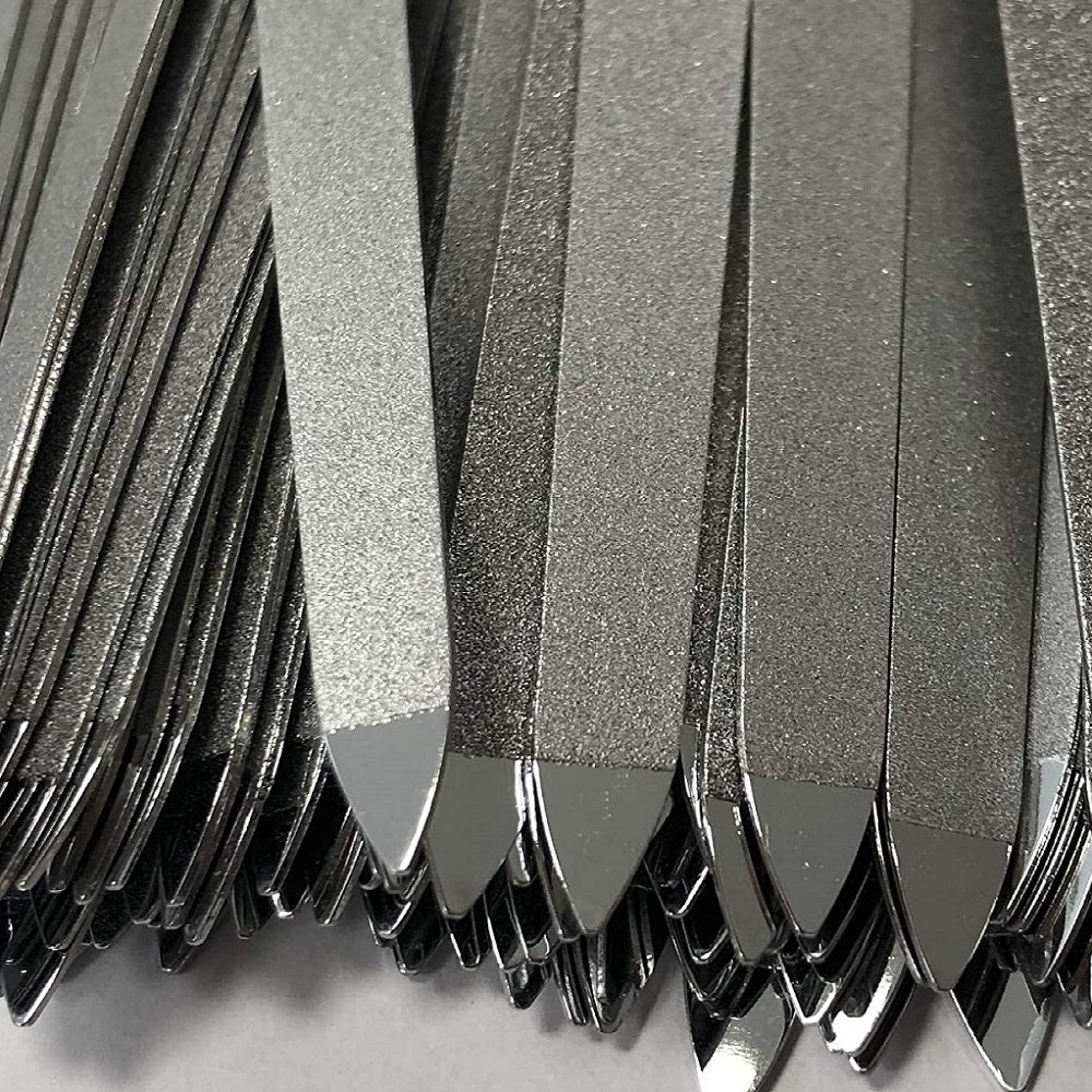 - Sapphire nail file (double-sided coarse/fine): Filing fingernails. The basic material of a sapphire-coated nail file consists of a hardened file steel blade in which sharp-edged abrasive material is embedded