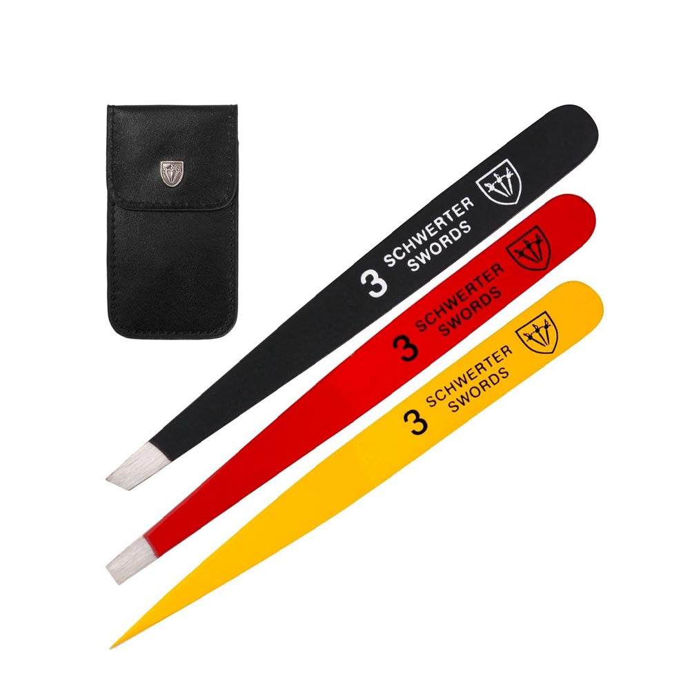 Kellermann 3 Swords High Precision Tweezer Set with different Tips in a black synthetic leather case (Item: AE 3432):